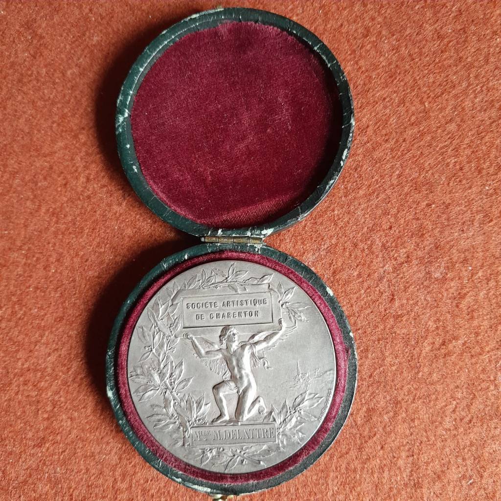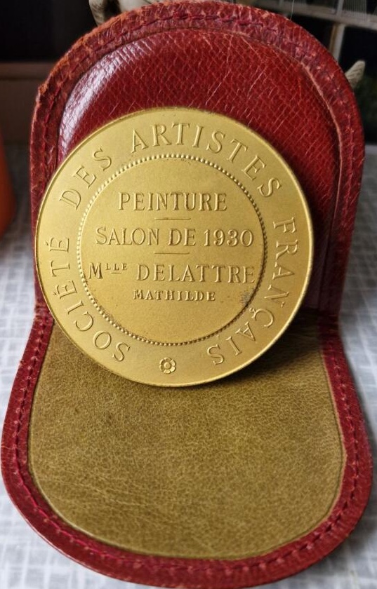 1930, médaille d’or de Mathilde Delattre au Salon des Artistes Français pour son aquarelle Contre-jour.