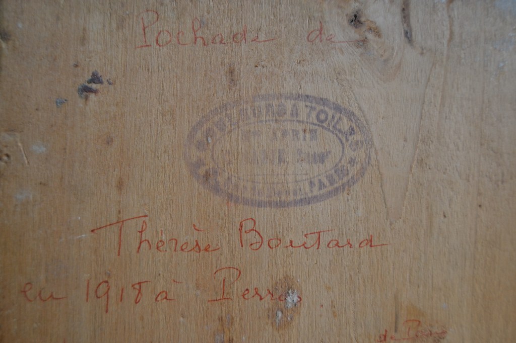 dos pochade « Nany » cachet de la maison Gadin, successeur d’Aprin, 43 rue de Douai à Paris (9è), soit à 350 mètres de chez Mathilde Delattre