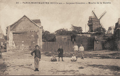 Les gosses de Montmartre et le moulin de la Galette dans l’impasse Girardon vers 1900…
