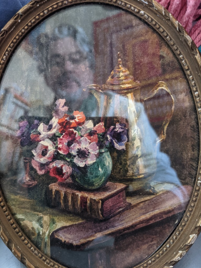 « Still live » dit-on en anglais pour « nature morte ». Quoi de mort dans celle- ci par exemple, le livre, les fleurs ??? Mathilde Delattre savait que l’esprit ne meurt pas: je suis persuadée que ce qui ne meurt pas sera près de nous toujours, écrivait-elle.