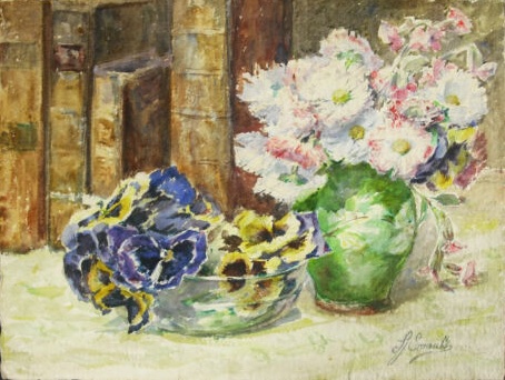 Suzanne Laigneau-Ernault, Bouquet de fleurs aux livres anciens