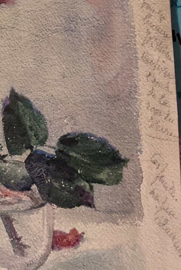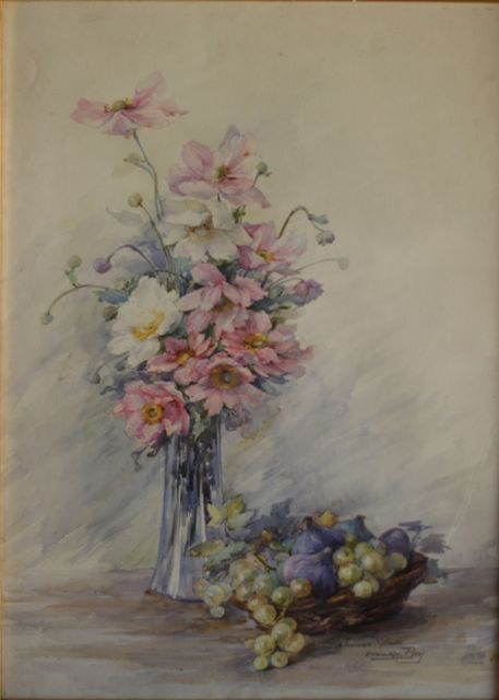 Comme pour Ysabel Minoggio (ci-dessus), l’oeuvre de l’artiste évolue, à partir de classiques aquarelles, vers des natures mortes aux formes plus « art déco ».