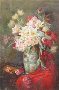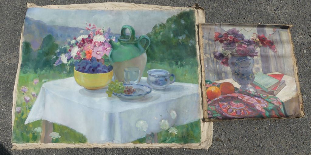 Quant à Yvonne Blanchon, amie de Louise Alix, elle fait évoluer ses compositions florales dans un intéressant « art déco ». Ses oeuvres viennent d’être redécouvertes (2024) dans la même vente, témoignant vraisemblablement de la proximité familiale des deux artistes.