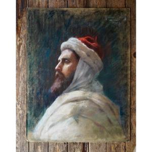 Yvonne Meley, Portrait d’un homme au turban, pastel, Salon de l’Union 1907. A comparer à un portrait à l’aquarelle d’homme oriental attribué à Mathilde Delattre.