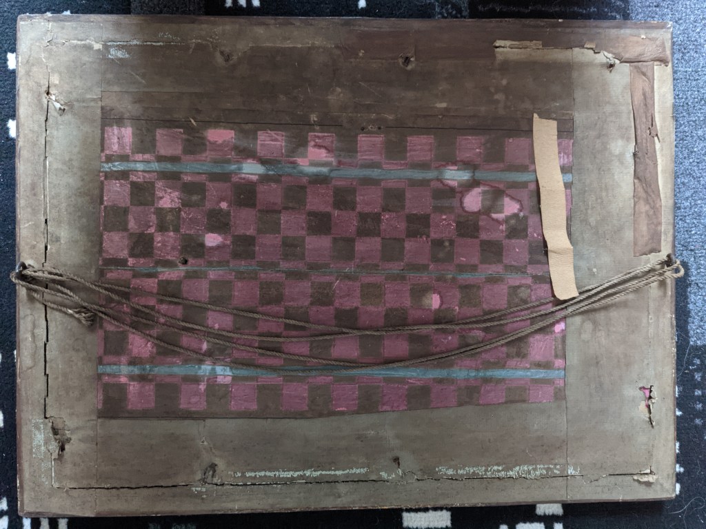 Un curieux encadrement « artisanal » réalisé à Roubaix et qui semble avoir incorporé un plateau de jeu à très nombreuses cases ?